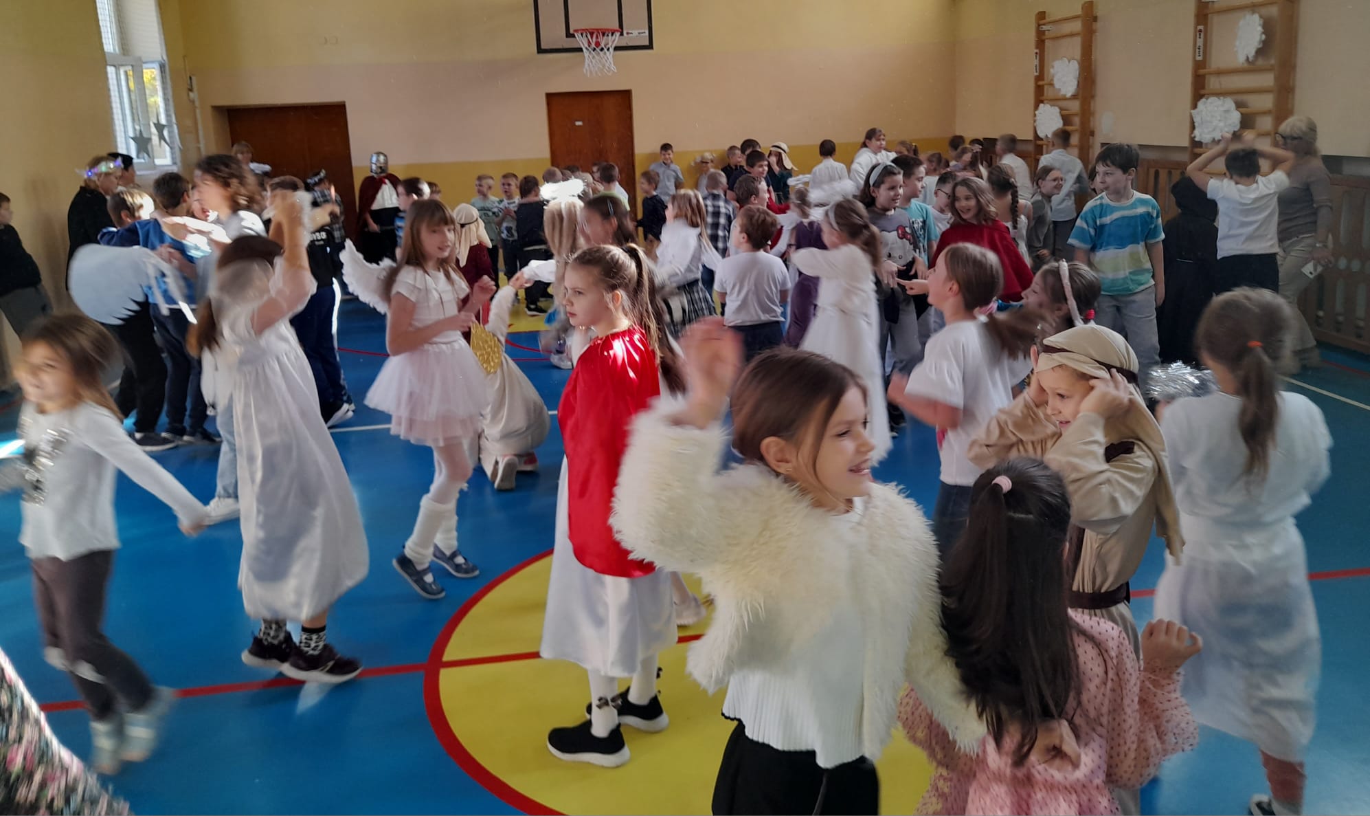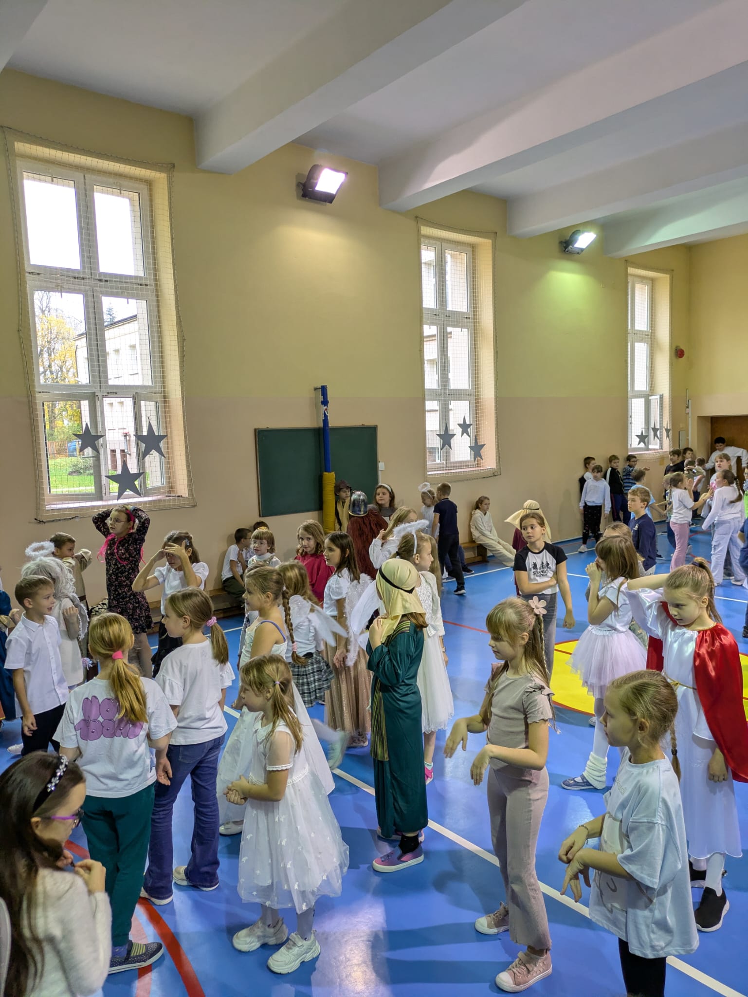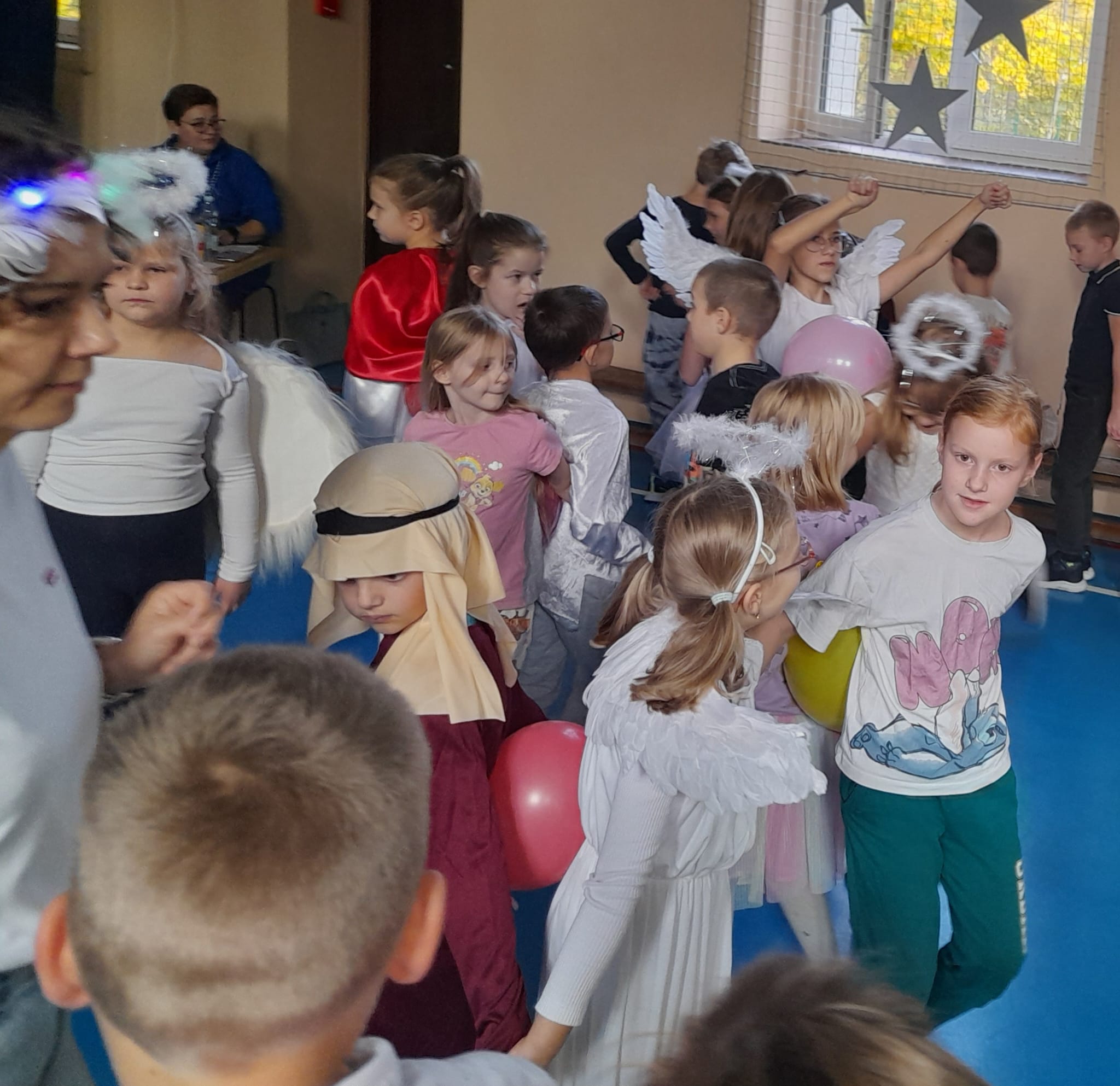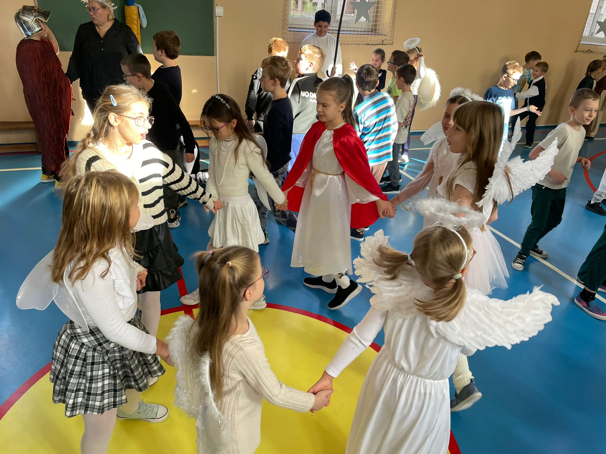 Tym razem bawili się uczniowie klas I–III, którzy z ogromnym zaangażowaniem i radością wcielili się w postacie swoich ulubionych świętych. Dzięki wspólnej zabawie dzieci poznały sylwetki świętych, ich dobroć, odwagę i miłość do innych.