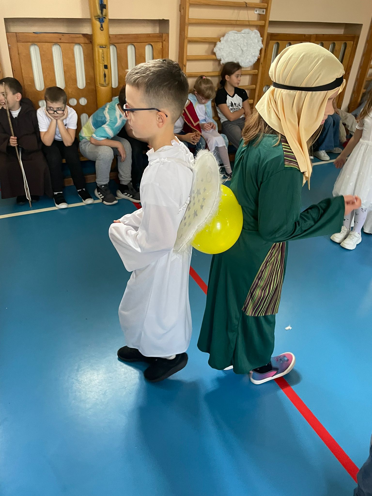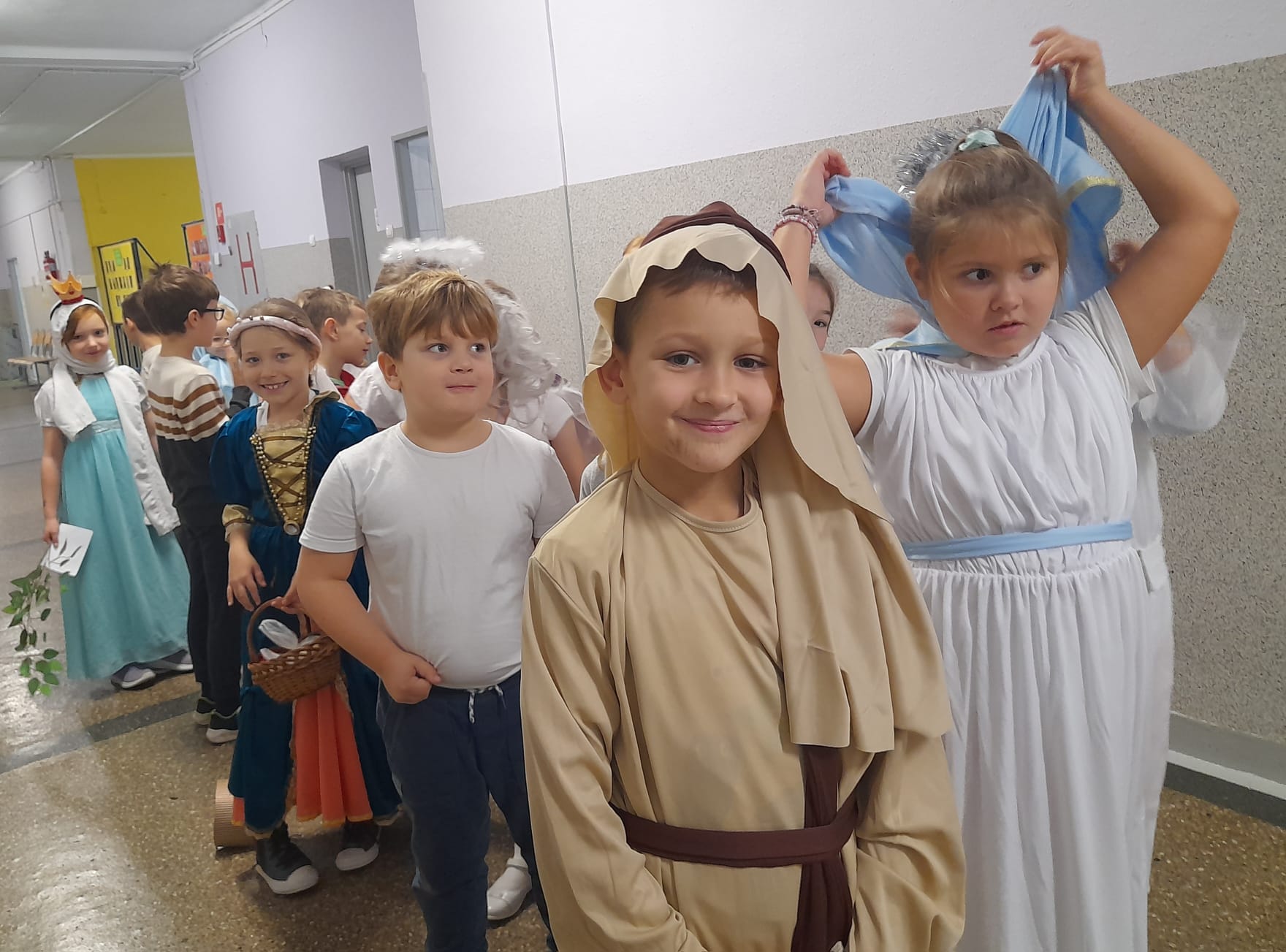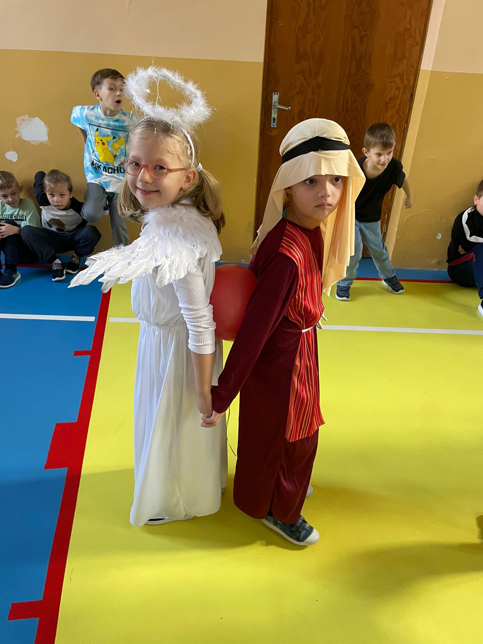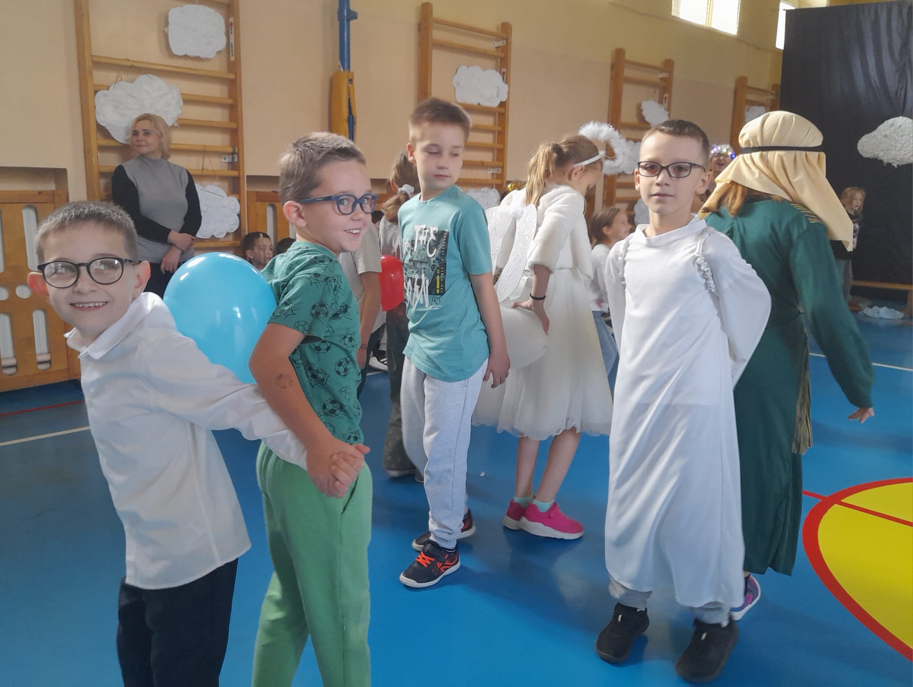 Tym razem bawili się uczniowie klas I–III, którzy z ogromnym zaangażowaniem i radością wcielili się w postacie swoich ulubionych świętych. Dzięki wspólnej zabawie dzieci poznały sylwetki świętych, ich dobroć, odwagę i miłość do innych.