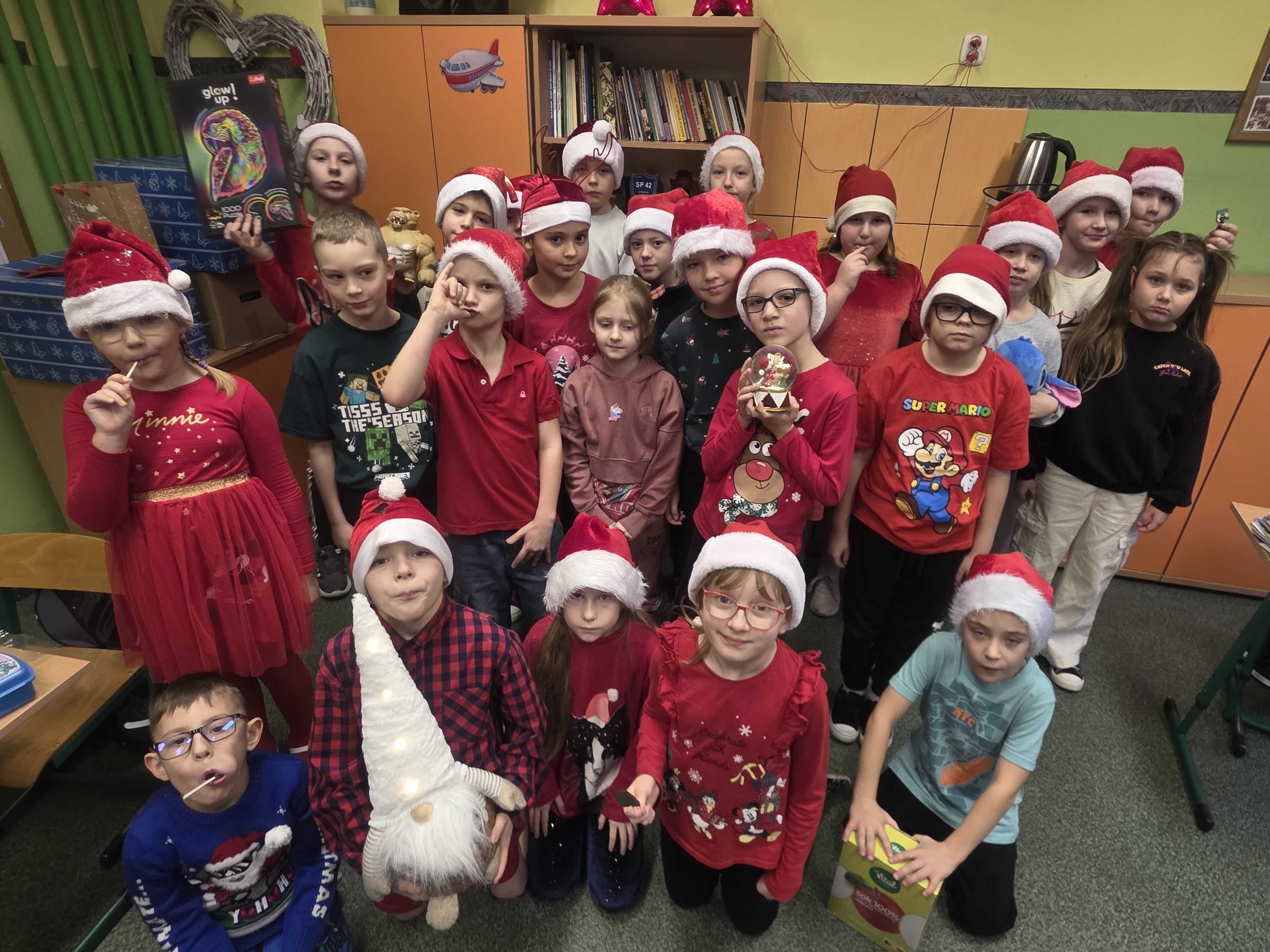 5 grudnia w naszej szkole zrobiło się wyjątkowo czerwono i bardzo świątecznie! W ramach akcji „Daj się zobaczyć św. Mikołajowi” uczniowie przyszli do szkoły w czapkach mikołajowych, tworząc radosne miasto św. Mikołaja na korytarzach SP nr 42.