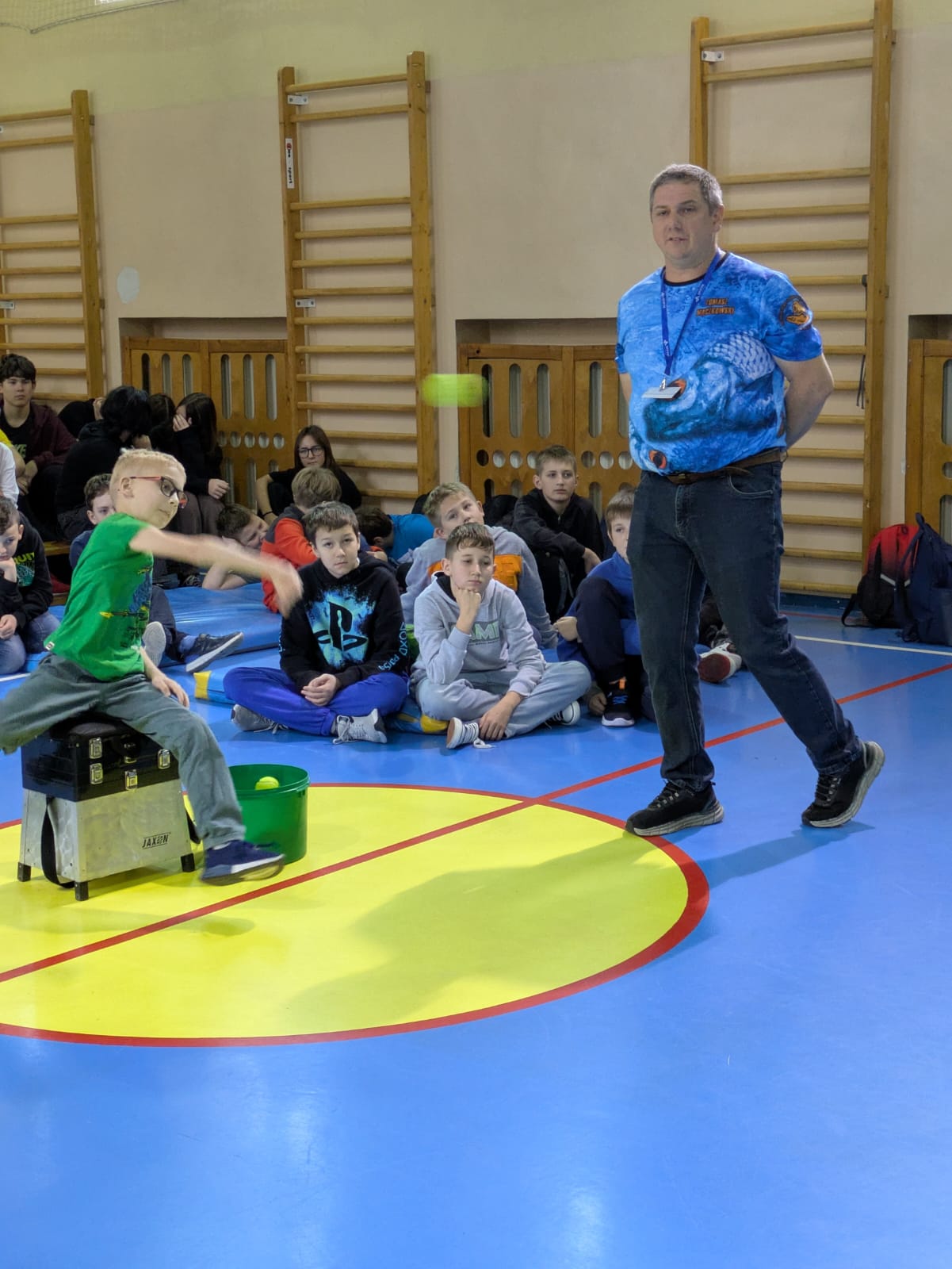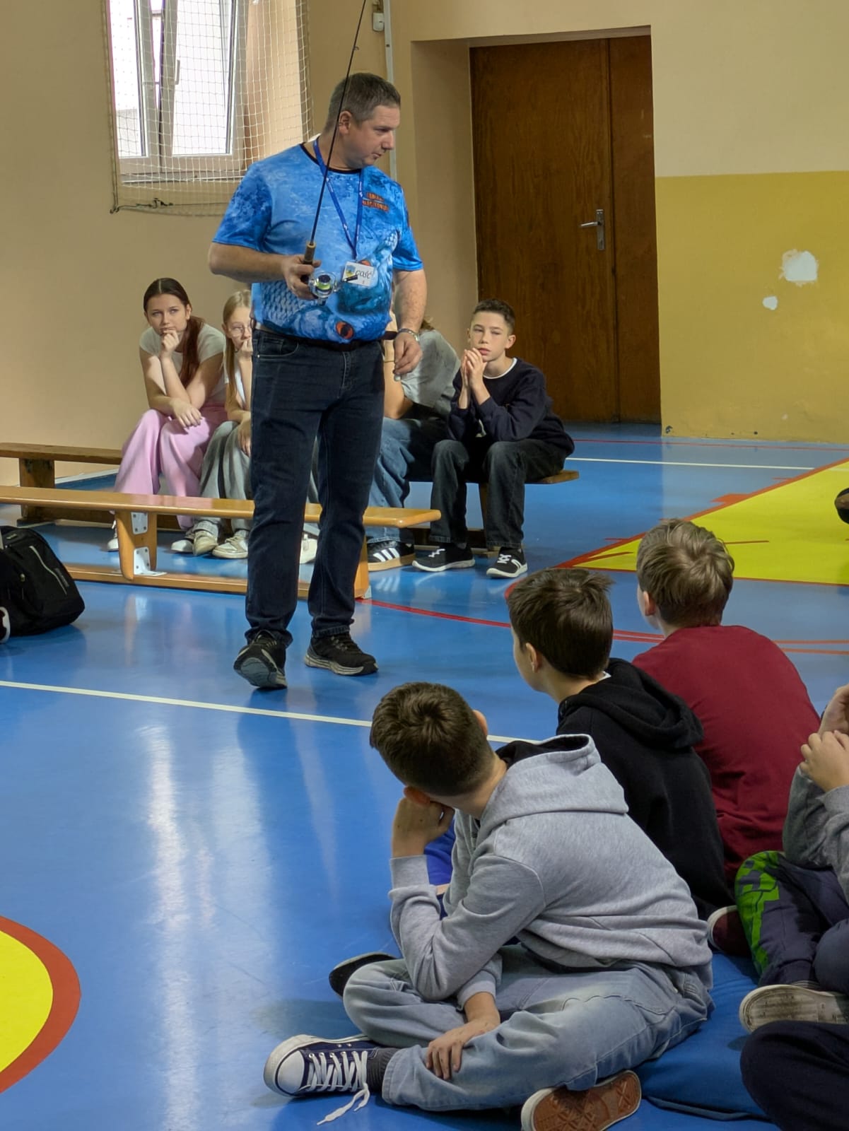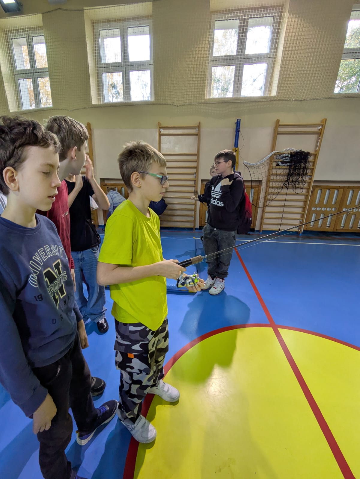 Podczas spotkania pan Tomasz opowiedział o możliwościach udziału w różnego rodzaju zawodach wędkarskich oraz o tym, jak i gdzie można rozpocząć swoją przygodę z wędkarstwem. Uczniowie mieli także okazję poznać podstawowe zasady posługiwania się wędką oraz spróbować swoich sił w grach i zabawach zręcznościowych przygotowanych przez prowadzącego.