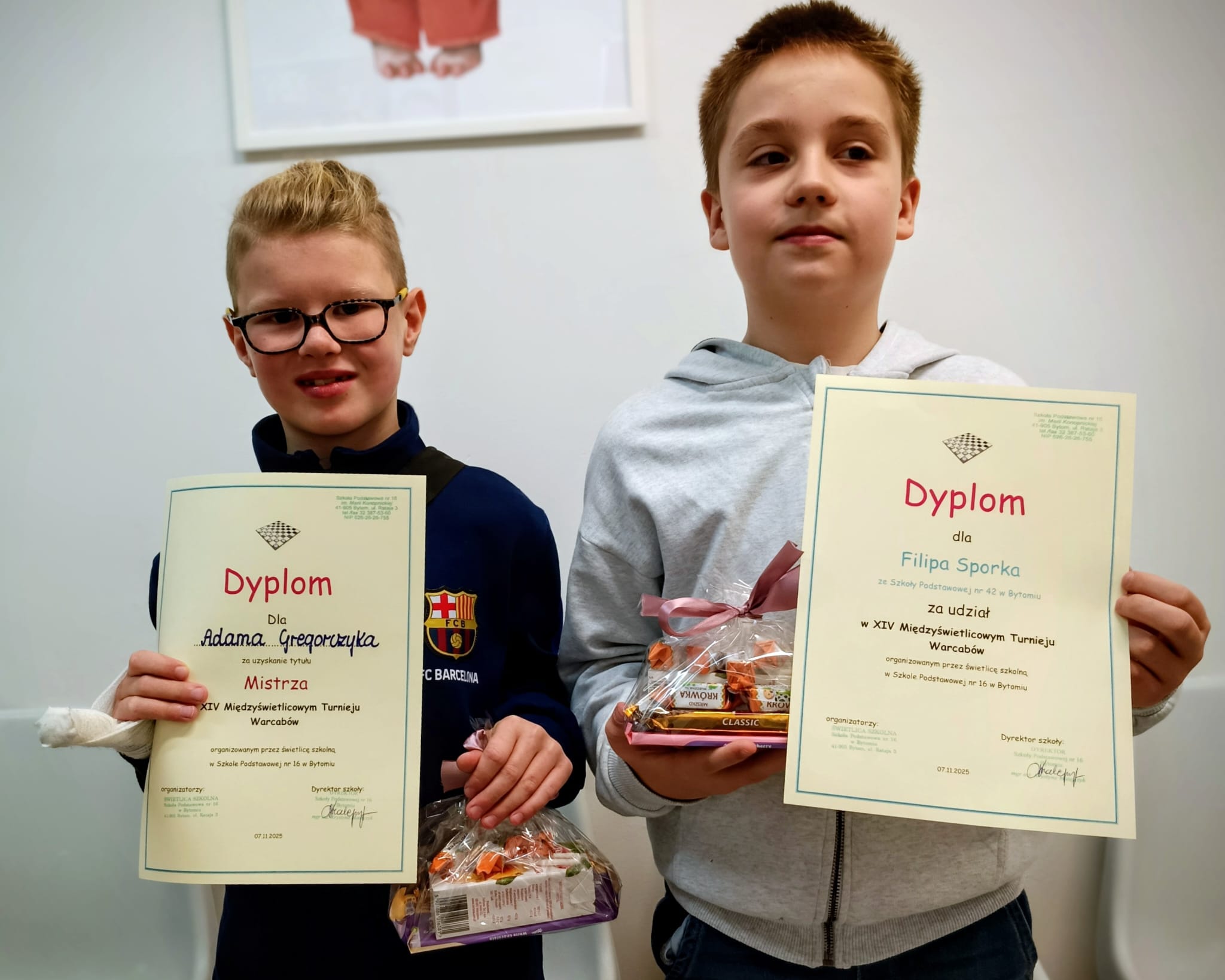 7 listopada 2025 roku dwoje uczniów naszej szkoły wzięło udział w XIV Międzyświetlicowym Turnieju Gry w Warcaby zorganizowanym przez Szkołę Podstawową nr 16 w Bytomiu.